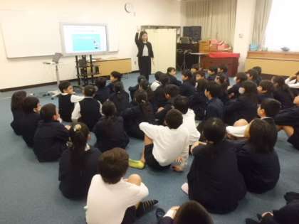 12月1日(金)5・6年生を対象としてライン出前授業を実施しました。最近、スマートホンのラインによる様々なトラブルがおこっています。正しい知識を身につけることはこれからの社会生活で必要なことです。子どもたちにわかりやすく説明をしてもらいました。