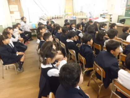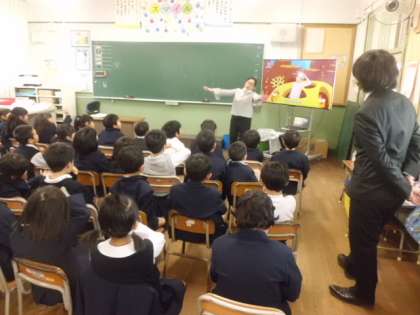 12月1日(金)1年生でC−NETの方による英語学習を行いました。映像も使い、ネイティブの英語による学習です。子どもたちは集中して授業に臨んでいました。