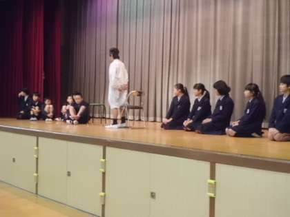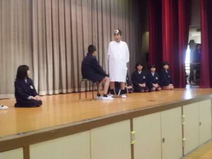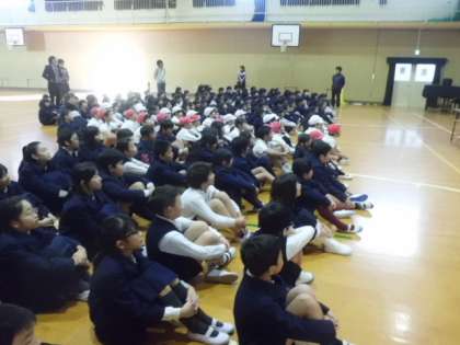 12月7日(木)の児童集会はさきほど学校保健委員会で行った内容を全校児童見ててもらう集会です。健康委員会と給食委員会の合同での発表、劇形式で行いました。朝ごはんや毎日の丁寧な歯磨きの大切さを話しました。