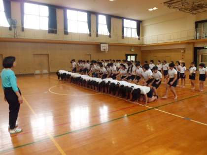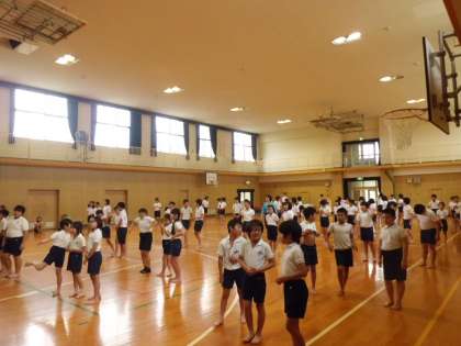 5・6年生の運動会での団体演技は組立体操です。いろいろな技を今、練習中です。6年生は昨年、経験していますが、5年生は初めてです。難しいところもありますが、意識を高く持って全員で協力してすすめていきます。