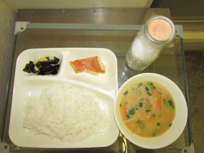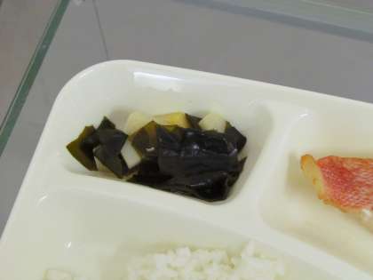 5月15日の給食ではわかたけ煮が久々に登場しました。