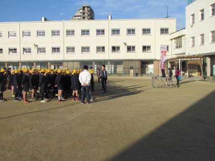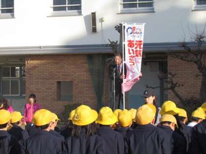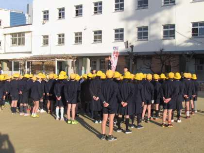 1月15日(月)の児童朝会の様子です。いい天気になりました。今週から「あいさつ週間」となっています。3学期に入って、少しあいさつの声が小さい感じです。だんだんと元気なあいさつができるようになってくると思います。1月13日(土)に行った90周年記念式典の子どもたちの様子について、話をしました。1部の式には姿勢正しく、話をしっかりと聞くことができていましたし、2部での演技も見ている人に感動を与える合唱・合奏となっているという話をしました。子どもたちの頑張りに私自身が感動しました。