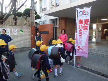 1月15日(月)〜19日(金)までは「あいさつ週間」となっています。児童会の子どもたちがのぼりをもって、登校する子どもたちに声かけを行います。ご家庭でも気持ちのよいあいさつの習慣化にむけて、ご協力をお願いします。
