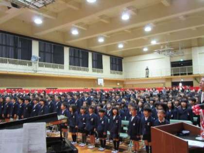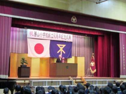 1月13日(土)に本校創立90周年記念式典を行いました。1部では国歌・大阪市歌斉唱、学校長式辞・事業委員長・PTA会長祝辞のあと、子どもたち全員で勝山小学校90回目の誕生日を祝って、呼びかけを行いました。1部と2部の間には、本校の歴史のDVDを鑑賞。2部では子どもたちによる合唱・合奏です。また、「世界にひとつだけの花」を教職員が楽器演奏、子どもたちが歌いました。子どもたちの頑張りを感じる時間となりました。最後に、80周年の時に封印したタイムカプセルを開封しました。感動をよぶ有意義な周年行事となりました。