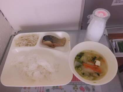 1月24日(水)の給食はさばのみそ煮、すまし汁、もやしのゆずの香あえ、ご飯、牛乳です。さばは、体をつくるたんぱく質や体の調子を整えるビタミンB1、ビタミンB2を多く含みます。さばの脂質には、体によいドコサヘキサエン酸(DHA)やエイコサペンタエン酸(EPA)が多く含まれ、血液の流れをよくしてくれます。