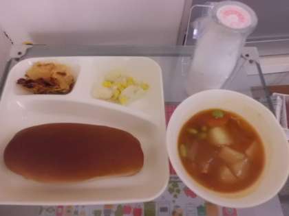 1月30日(火)の給食は鶏肉と野菜のケチャップ煮、カリフラワーとコーンのサラダ、桃のクラフティ、パン、牛乳です。クラフティは、フランスの焼き菓子の一つです。給食では、卵、クリーム、砂糖、小麦粉、果物を混ぜ合わせ、コーンフレークをしいたミニバットに流しいれて焼きます。今日は、小さく切られた白桃の缶詰を使っています。