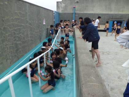 6月24日、朝からの雨もあがり晴れ間がみえてのプール開きとなりました。昨年勝山小学校でのプールを経験していることもあり、今年最初のプール水泳を楽しむことができました。