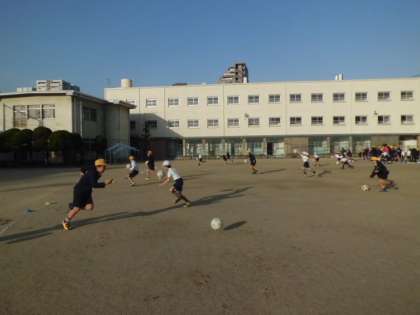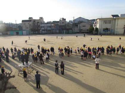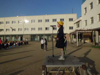 1月18日(木)の児童集会は体育集会です。縦割り班でボールを使ったリレー形式のゲームです。行きは手でのドリブル、帰りは足でのドリブルでつないでいきます。なかなかうまくいきませんが、楽しく行うことができました。