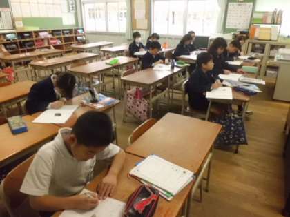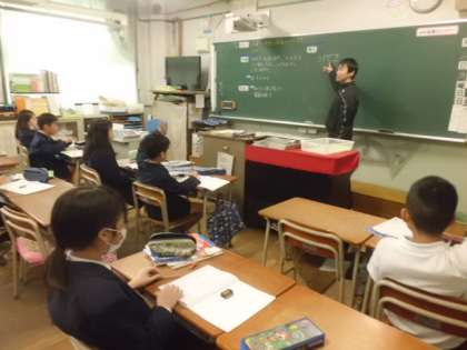 1月22日(月)4年算数授業の様子です。今日は二つのクラスに分けて少人数で行っています。わり算のところです。