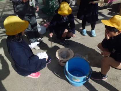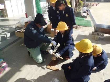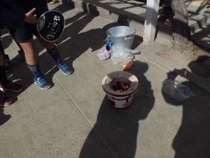 七輪を使って おもちを焼きました。火をおこすのもなかなか大変です。昔の火をおこす道具を見せてもらいました。今よりもっと大変だったんだとなと思いました。