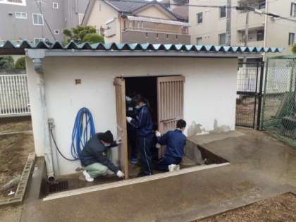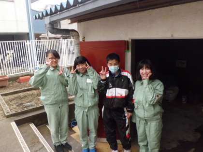 4名は、勝山小学校の卒業生です。管理作業員さんから、丁寧に仕事を教えてもらい、体験し、学びました。作業服姿も素敵ですね。お疲れさまでした!