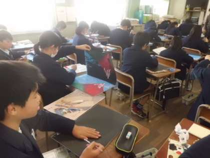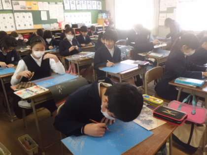 2月5日(月)6年生の版画がかなり進んできました。色を付けている子どももいます。