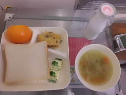2月6日(火)の給食は押し麦のグラタン、スープ、いよかん、パン、マーガリン、牛乳です。大麦は小麦と同じイネ科の穀物です。大麦の皮とぬかをとり、蒸してから、平たく押したものを「押し麦」といいます。主な栄養素は炭水化物です。おなかの調子を整える食物繊維がとても多く含まれています。カルシウムやカリウムも多く含まれています。