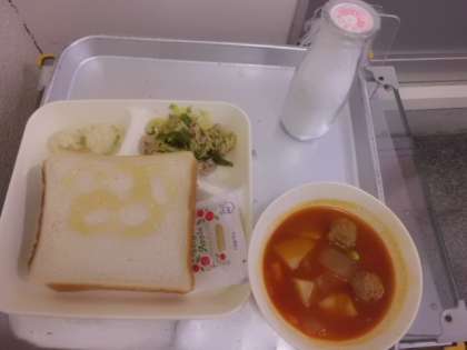 2月15日(木)の給食はミートボールと野菜のケチャップ煮、ツナと野菜のソテー、カリフラワーのレモン風味サラダ、パン、りんごジャム、牛乳です。カリフラワーは、一年中出回っていますが、11月から3月ごろが、もっともおいしい旬の時期です。給食では、サラダやスープ煮の献立に登場します。