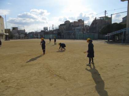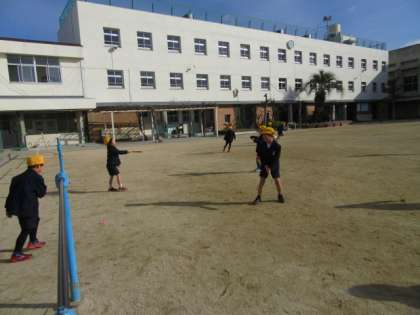 昨日の2月5日に1年生が生活科の「むかしのあそびをたいけんしよう」という学習で「はごいた」と「竹とんぼ」をしました。なかなか思うよういきませんでしたが、楽しむことができました。