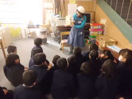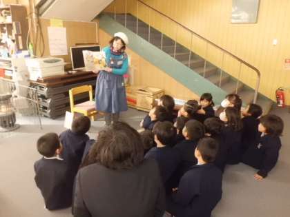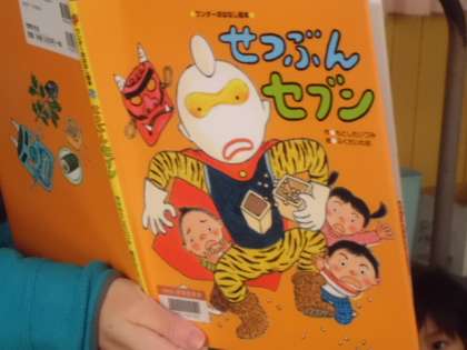 2月6日(火)1年2組の子どもたちが図書館を利用していました。図書館補助員の先生による絵本の読み聞かせがありました。「せつぶんセブン」という絵本です。話を真剣に聞きながら、絵本をじっと見つめていました。
