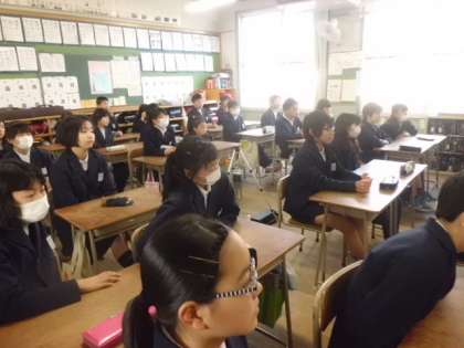 2月22日(木)1時限目、6年生のお薬教室の様子です。学校薬剤師の先生にきていただき、様々な薬の紹介、正しい薬の飲み方など、映像を見ながら詳しく説明していただきました。実際に水以外の飲み物で薬を飲むことの弊害など、実験を通して、学ぶことができました。