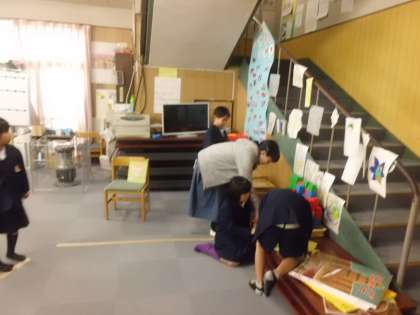 3月20日(火)の昼の時間に図書館開放がありました。今日は図書館補助員の先生がきていて、絵本の読み聞かせもありました。