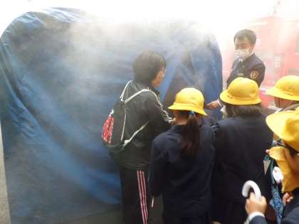 24日4年生が生野消防署に見学に行きました。消防車の種類や救急車の装備など、細かいところまで説明していただき、たいへん勉強になりました。人体に無害な煙を使って、煙の中を歩く体験もさせていただき、火事の恐ろしさを学習することができました。