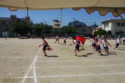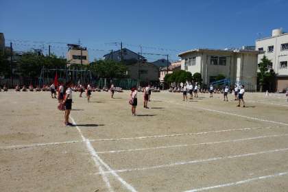 開会式、閉会式の練習の後、全体で応援合戦の練習。気合が入っています。