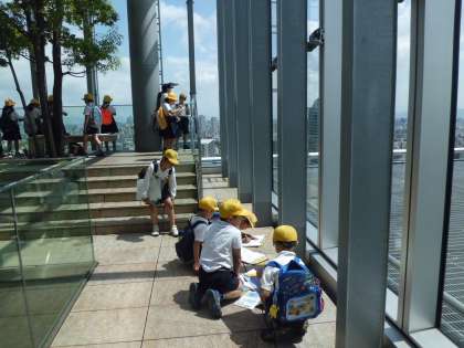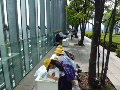 「天王寺動物園や!」「あそこのずっと奥に見えるのは大阪城。」「四天王寺さんも見えたで。」みんな、色々見つけては、友だちと確認したり教えあったりしていました。