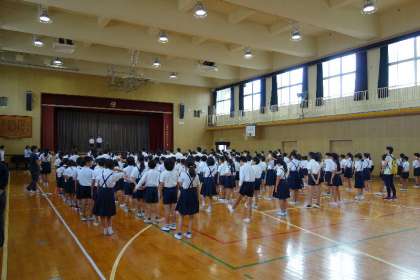 7日の児童集会は、明日8日に予定している全校遠足の打ち合わせ。