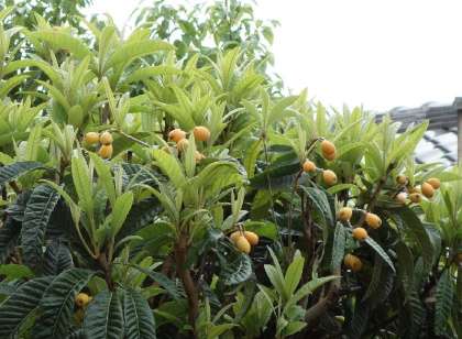 講堂の東側を見ると、ぶどう棚があるのですが、その向こうに枇杷の実がなっている様子が見えました。本校にはいろいろな木が植えられているのだなと感心しました。