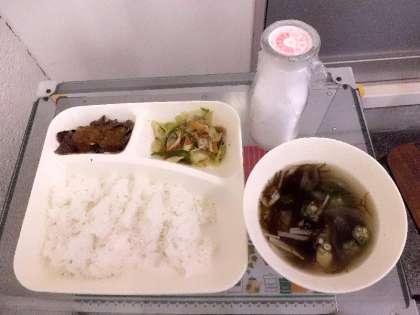 給食のもずくは沖縄県でとれたもので、今日はとろり汁に入っています。