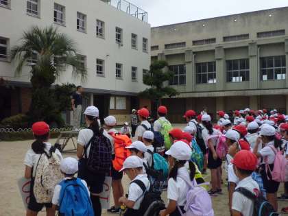 みんな元気に出発しました。少し天気も気になるところですが、現在の雨雲も一時で、過ぎ去るようなので、みんなのパワーできっとお天気もなんとかもってくれるでしょう。