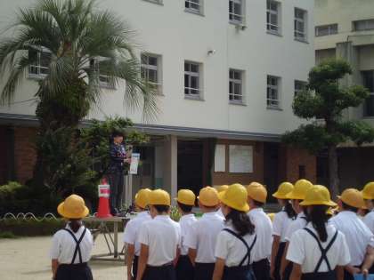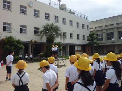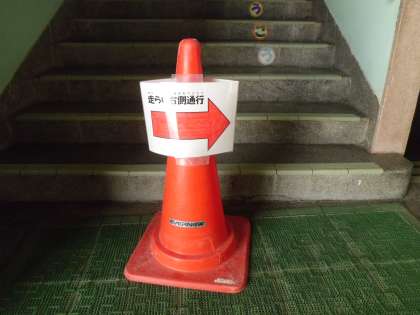 ポスターやカラーコーンに掲示し、みんなに注意喚起を行います。