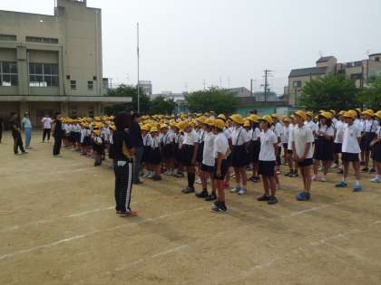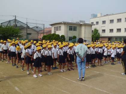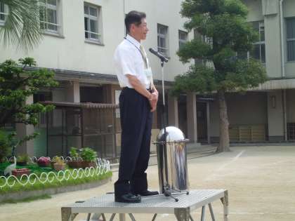 今日の児童朝会の話はこの夏から、校舎の耐震工事が始まるということにかかわって、学校の創立について話をしました。写真の金属製のものは、平成19年度に行われた創立80周年の時のタイムカプセルです。埋めてしまうとわからなくなってしまうというので、校長室に保管されています。あと3年で90周年です。「伝統ある学校で学ぶ喜びを感じながら、勉強・運動に頑張りましょう」という話をしました。