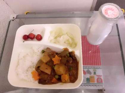 今日のハヤシライスにはラッキー人参が入っています。よく見るといろんな形のラッキー人参がありますね。皆さんにはどんな形のラッキー人参が入っていましたか?