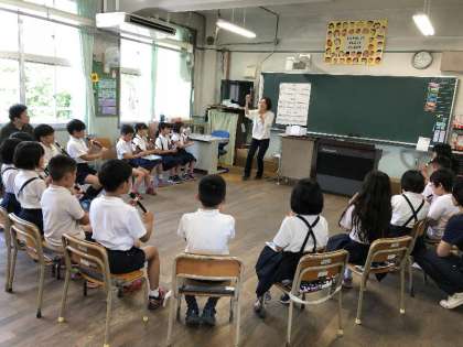 25日、音楽科の授業研究会を行いました。今回は3年生の授業で「リコーダーとなかよしになろう」。