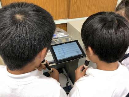 学級を二つに分けて、タブレットPCを使いながらの授業でした。