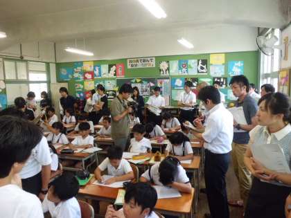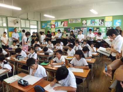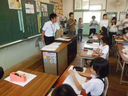 6月19日(木)の5時限目に校内の研究授業と兼ねて、市内新任教員の研修会が行われました。本校教員を合わせると50人近くの先生が見ていることになります。窓や前後の戸も外して参観しやすいようにしました。大勢の先生が見ていて緊張感がある中、子どもたちは、あまり動じず集中して道徳の授業を受けていました。