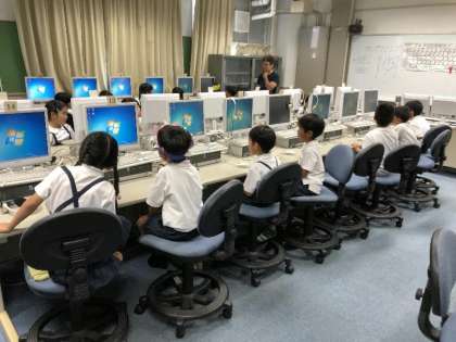 マウスの持ち方から始まって、クリックの仕方など今日だけでもいろいろなことを学びました。マウスの感覚が慣れていない児童もいましたが、瞬く間になれてきました。さすが、若い。