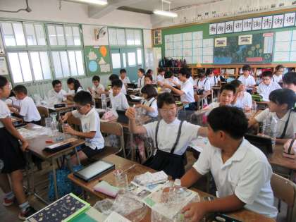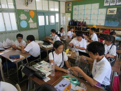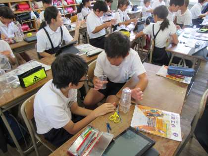 6年生図画工作科「動きをとらえて 形を見つけて」の学習です.水の特徴を生かし、水が見せる面白い形や美しい形を撮影します。