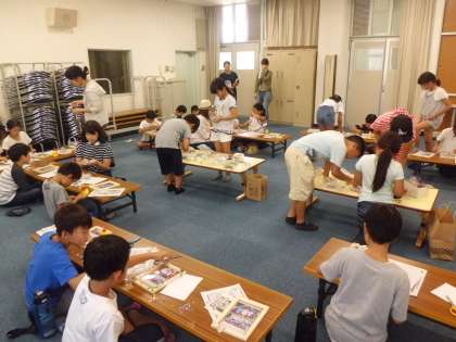 きらきらのスパンコールにラメの入ったリボン、小さな貝殻、ビーズ玉等々どれを使うか迷います。思い出といっしょに大切にしてくださいね。この後閉会式を行いました。PTAの役員の方々、委員の方々、保護者の方々、青少年指導員のみなさん本当にありがとうございました!