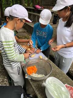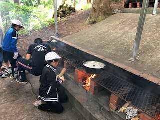二日目のお昼は飯盒炊さんです。カレーを作りました。みんなとっても美味しくできました。
