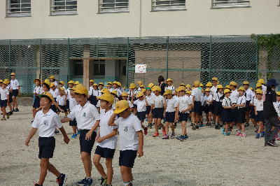台風の影響で4日、5日と連続して休業になりましたが、6日朝はみんな元気な顔で登校してきました。