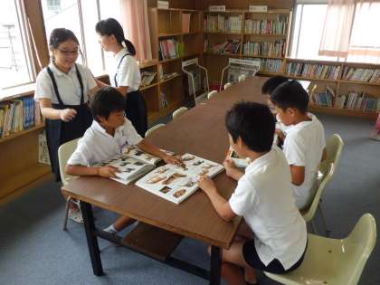 7月2日(水)の昼休みの時間に図書委員会による図書館開放がありました。まず、図書員会の児童が職員室で始まる前に「今日、図書館で図書館開放があります。紙芝居もします。」などの放送をします。時間になると子どもたちが集まり、本を読む子、紙芝居を見る子など様々です。さらに、読書好きな子どもが増えればと思います。