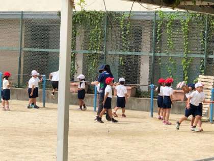 一年生、今日の体育は鉄棒。