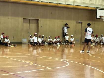 サッカーボールを手でドリブル? ちょっと不思議な練習もありますが、そこはプロ、とても上手に教えてくださいました。