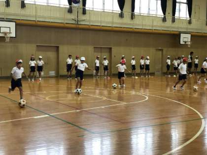 20日の3時間目はトップアスリート小学校ふれあい事業によるセレッソ大阪スクールコーチの派遣があり、2時間目の6年生に続いて、5年生もサッカー教室が開かれました。