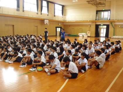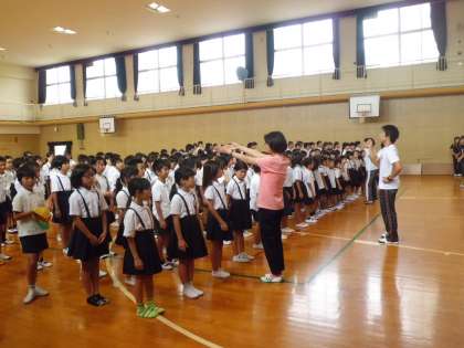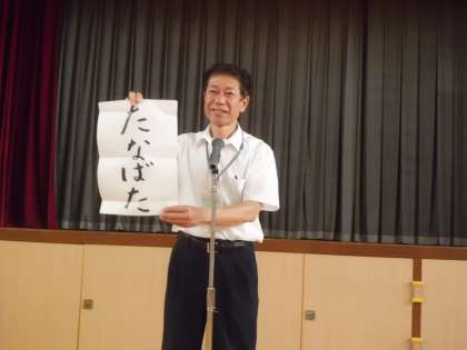 今日は7月7日、七夕です。そこで今日の児童朝会の話は、七夕のお話を読み聞かせふうにしました。織姫、彦星のこと、離れ離れになったのは、一年に一度会えるのは、などのお話をしました。子どもたちは私の方をしっかりと見て、聞き入っていました。