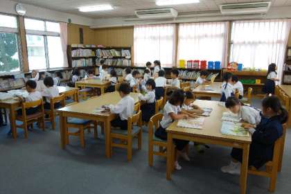 図書室に入ってきて、借りる本を選んで、貸出しの手続きが済んだら席について静かに本を読みます。