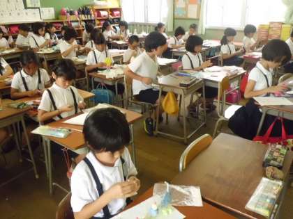 子どもたちは集中して、思い思いに粘土で作品をつくっています。