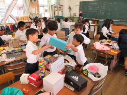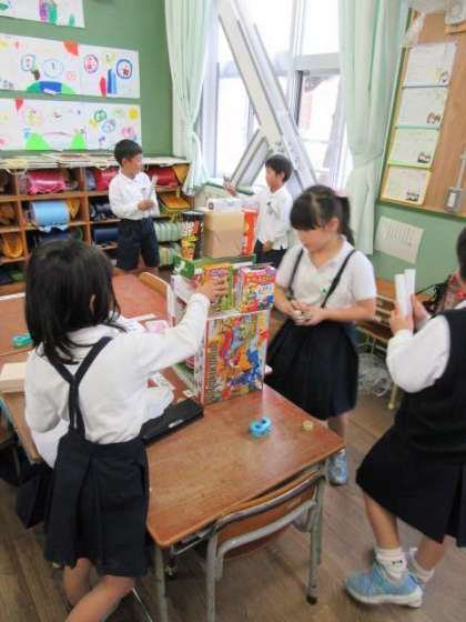 身のまわりの形を使って、いろいろな物をつくりましょう。