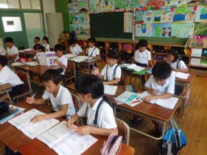 7月16日(水)の2時限目、2年生が算数の学習です。水の量の表し方を、1リットル升、1デシリットル升などを実際に見ながら、学習しました。一生懸命に、担任の先生の説明を聞いている子ども達の表情がよかったです。