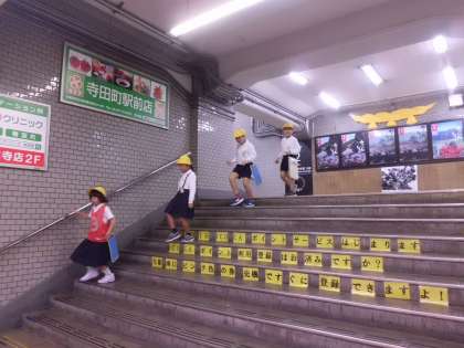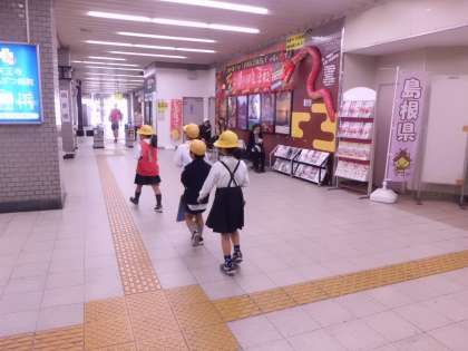 リーダーを先頭に並んで歩きます。